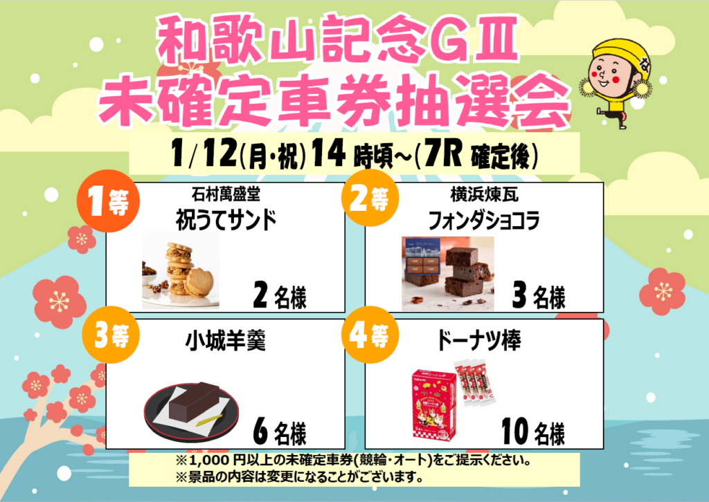 1月12日(月・祝)和歌山記念GⅢ未確定車検抽選会を実施!