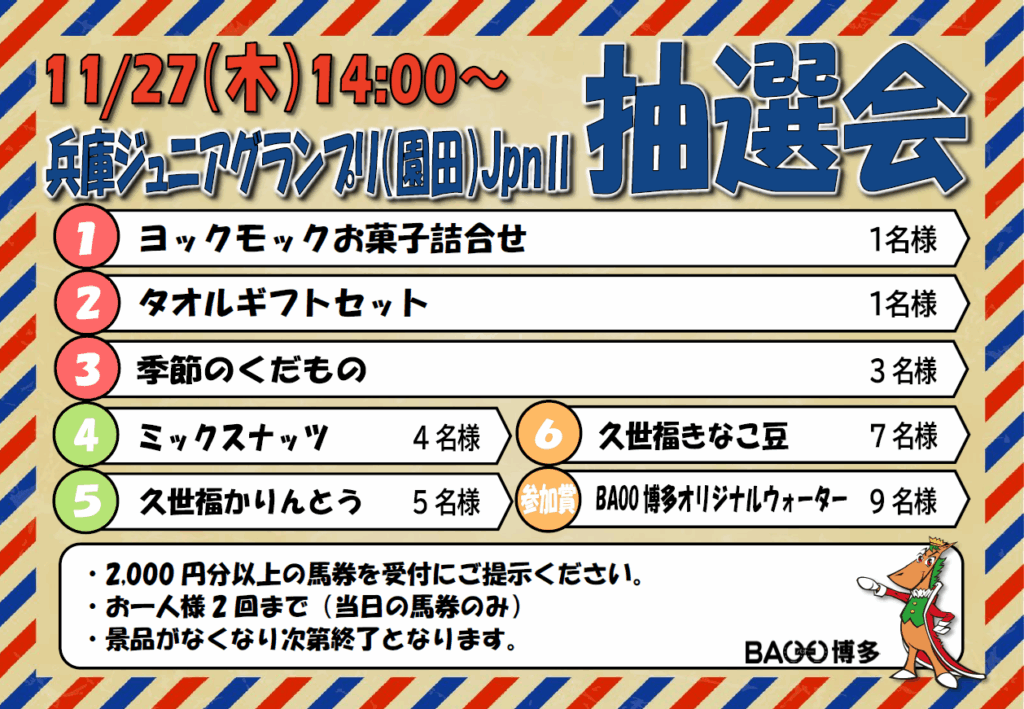 11月27日(金)兵庫ジュニアグランプリ抽選会を実施