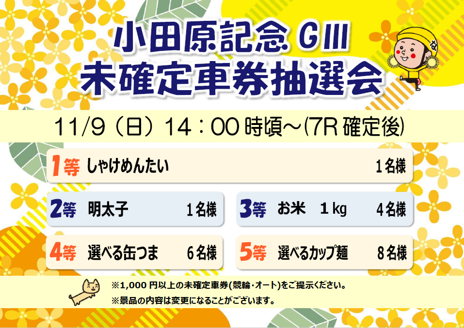 11月9日(日)小田原記念GⅢ未確定車券抽選会を実施!