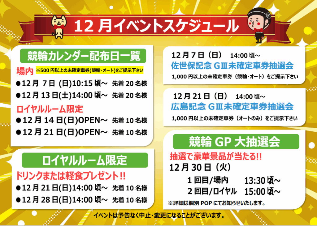 また恒例の競輪カレンダーの配布も行いますので、お忘れなく!!📅