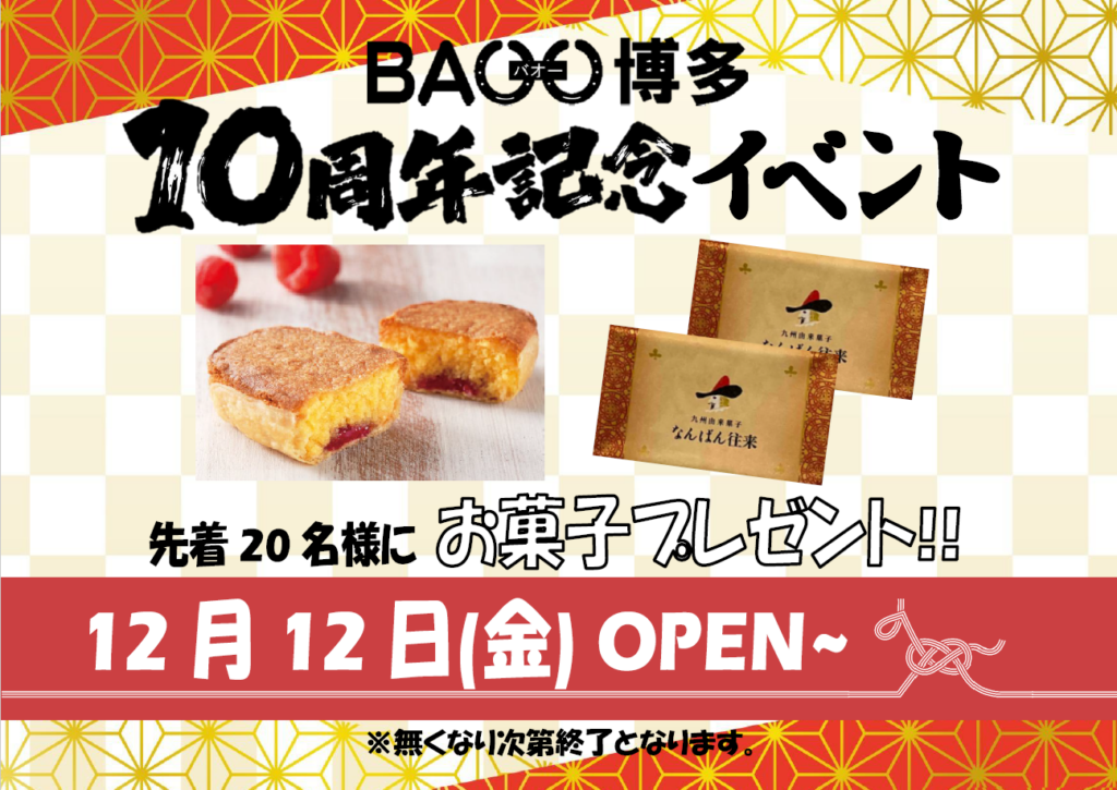 12月12日(金)BAOO博多10周年先着お菓子配布