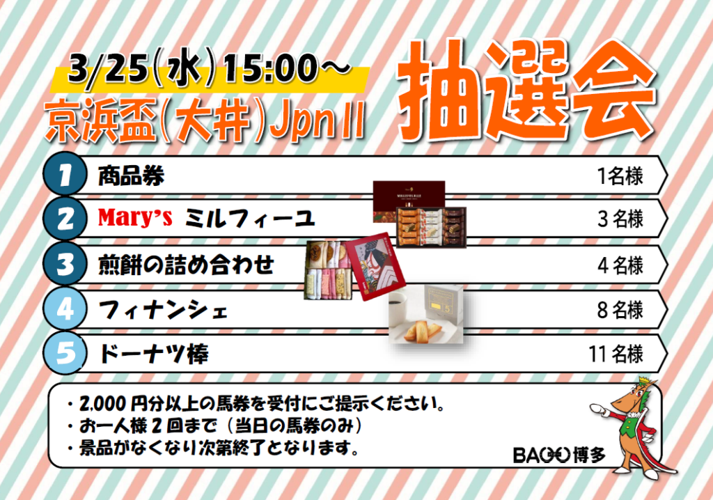 3月25日(水)京浜盃 JpnⅡ馬券抽選会を実施!