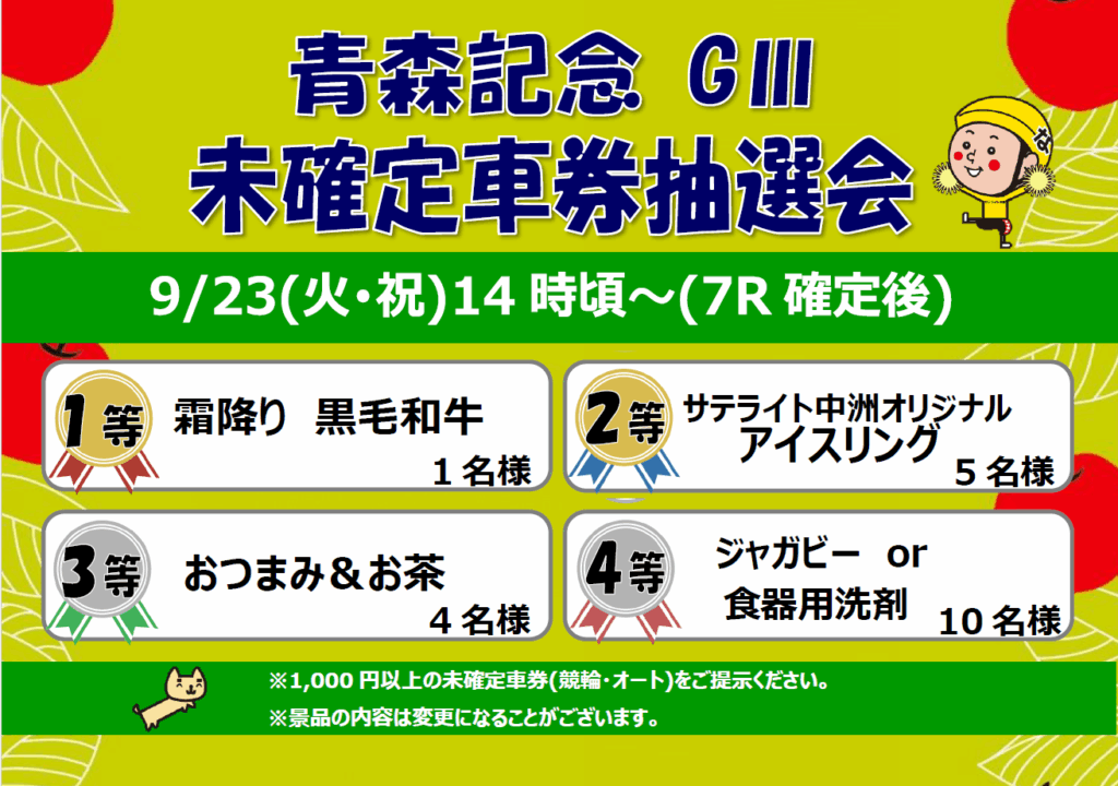 9/23(祝・火)青森記念GⅢ未確定車券抽選会