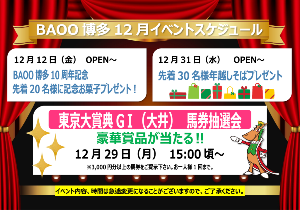 大賞典馬券抽選会や大みそかには年越しそばをプレゼントいたします!